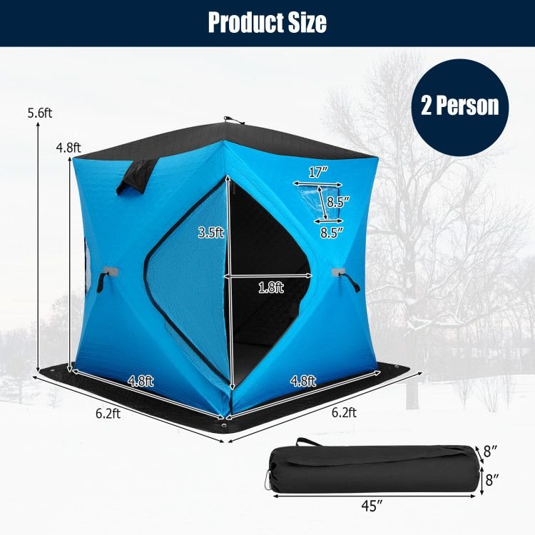 Portable 2 Person Ice Shanty with Cotton Padded Walls