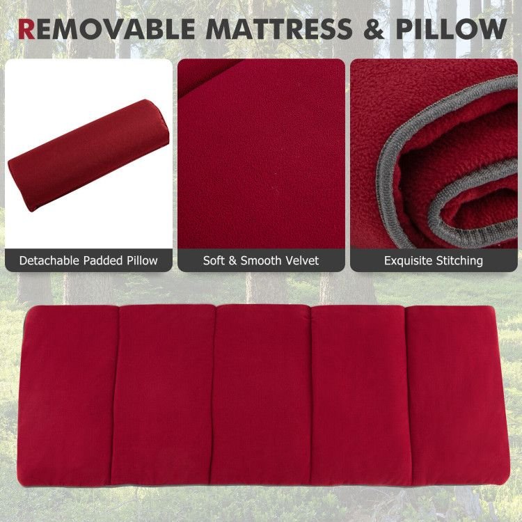 ● Ultra-Comfortable Design: The outdoor sleeping bed is designed with a removable mattress with soft and smooth velvet, which is breathable and comfortable, giving you a quality sleeping experience on cold days. Moreover, there also equips with a removable padded pillow to relax your neck and head.