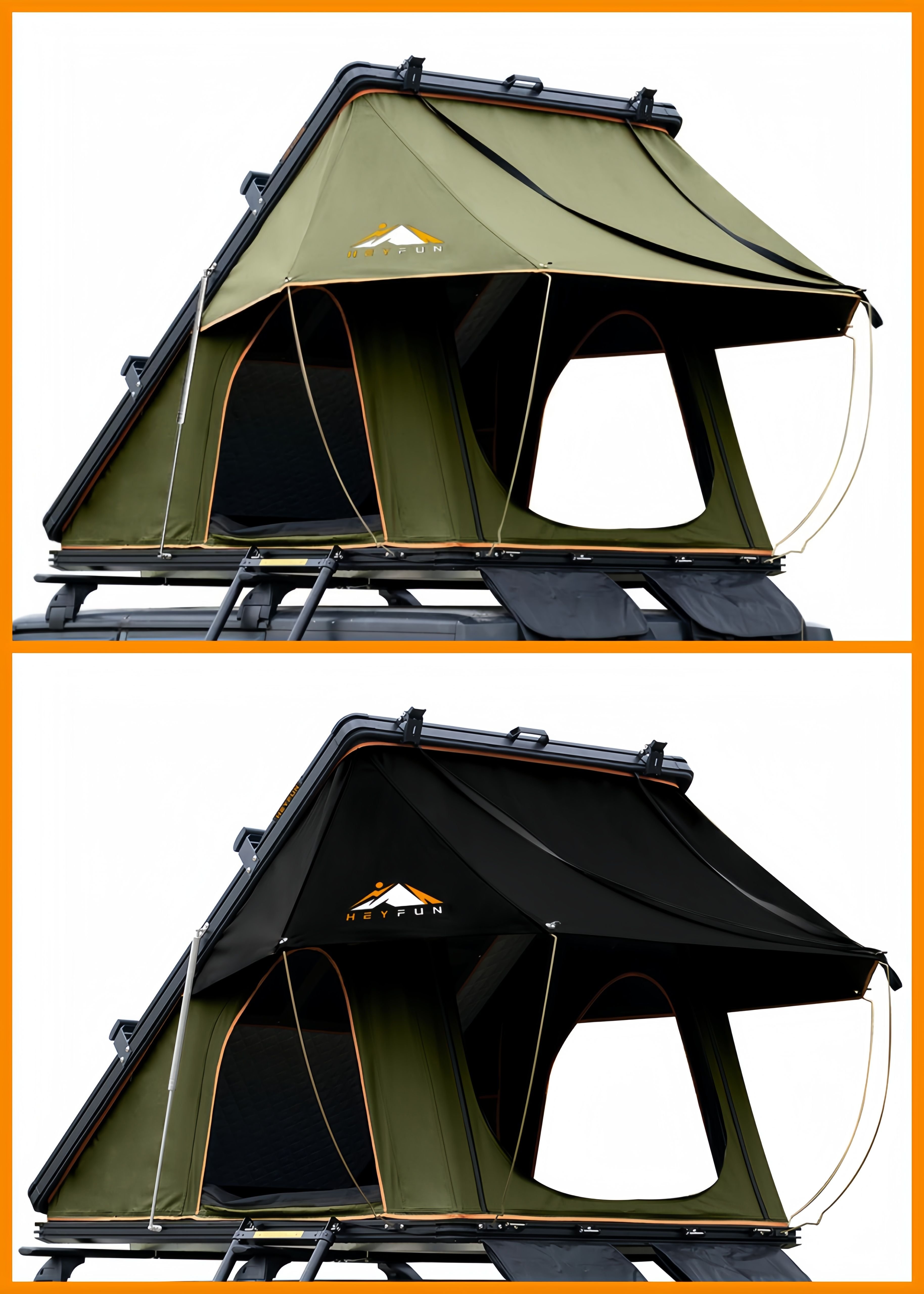 2. [Upgraded Roof Top Tent to 100% Market Excellence] - HEYFUN rooftop tents are standout options with premium features including extra attachable side awning, air conditioner outlet with detachable bracket, adjustable luggage racks and replaceable rain flies, best travel solution for carrying more luggage and perfect choice for camping enthusiasts and seasoned adventurers of all levels valuing quality and affordability.