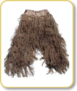 • By using a netting on the outside of the BDU's, you can add natural vegetation while out in the field.  This allows you to change your colors by adding sticks or leaves.